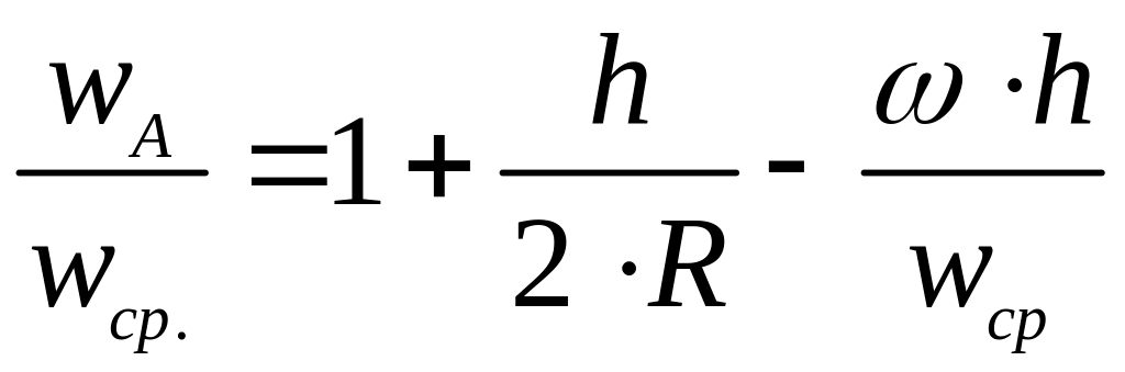 Отношения относительных скоростей на вогнутой поверхности лопатки wА и на выпуклой поверхности лопатки wВ к среднемассовой относительной скорости wср для центростремительной турбины определяются следующими зависимостями