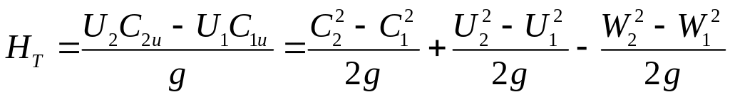Если это уравнение почленно умножить на g, то получим удельную теоретическую работу.