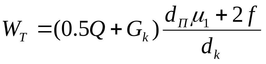 где FT — сила трения ножей о поверхность ствола, Н; WT—хила собственных сопротивлений протаскивающего устройства с комлем дерева в захвате, Н.