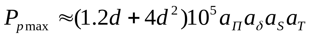 4.1.1. Для определения усилия срезания сучка, рис. 1,а Рmах(Н) в зависимости от его диаметра dс(м), породы дерева и угла резания в зависимости от его диаметра dc (м), породы дерева и угла резания может быть использована эмпирическая формула (при 0,12 м>dс>0.04м)