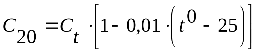 Если температура электролита отличается от +250С, то полученная емкость должна быть приведена к емкости при температуре +250С по формуле: