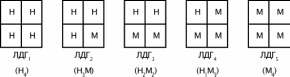 Изоферменты ЛДГ представляют собой тетрамеры из субъединиц двух типов в каждой молекуле изофермента, при этом число субъединиц равно 4. Это может быть представлено в виде следующей схемы: