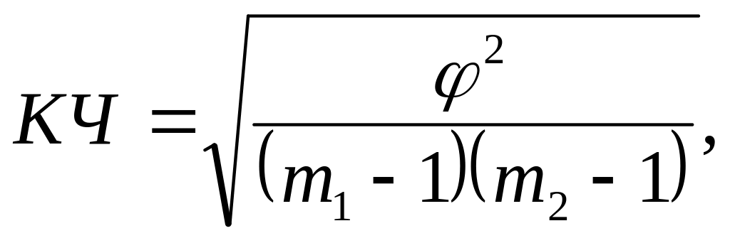 Применяется для измерения связи между соотношением двух атрибутивных признаков по трем и более группам. Рассчитывается по формуле: