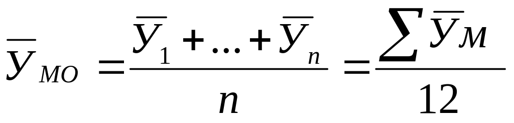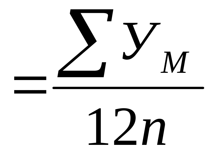 где Умn, 1≤ n ≤∞, - уровень по месяцам в n-ый год; 2) средняя арифметическая месячная : (общая