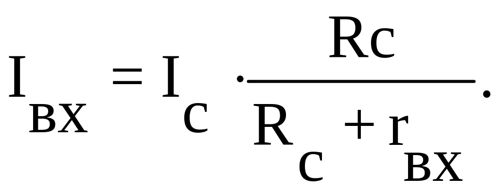 При условии, что Rc >> rвх, почти весь ток источника входного сигнала будет ответвляться во входное сопротивление усилителя и Iвх ≈ Ic.