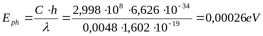 Энергия фотона, имеющего такую длину волны, относится к межуровневым переходам электрона в атоме. Определим её.