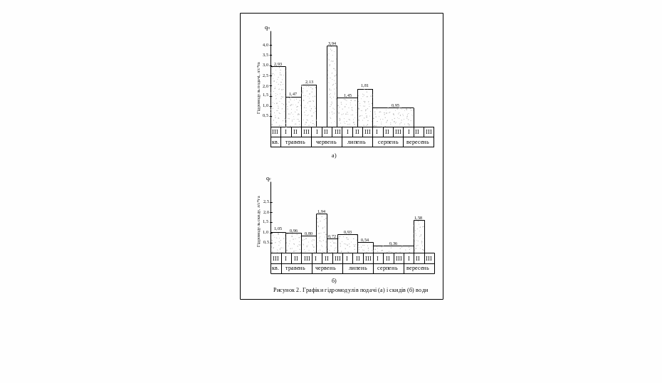 За даними гр.17 та гр.19 будуються графіки гідромодулів подачі і скидів (рис.2).