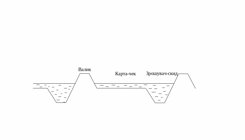 При реконструкції рисових систем у зоні Північно-Кримського каналу (ПКК) впроваджена у виробництво так звана карта-чек з Широким фронтом залива і скидом води (КШФ). Карта-чек – це карта, яка складається з одного чека, де уздовж довгого його боку влаштований зрошувач-скид у вигляді канала у виїмці (рис.4).