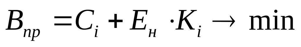 При порівнянні декількох варіантів технологічних процесів для виготовлення одного виду виробу, найбільш ефективним може бути прийнятий той, сума приведених витрат (Впр) у якого буде мінімальною, тобто