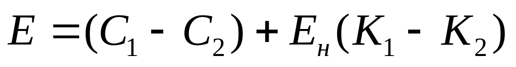 K1, K2 – одноразові (капітальні) витрати при підготовці та освоєнні виробництва на базовий та розроблений технологічні процеси відповідно, грн.;