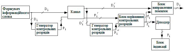 Блок-схема захисту даних, представлених кодом Хеммінга показана на рис. 5.2.