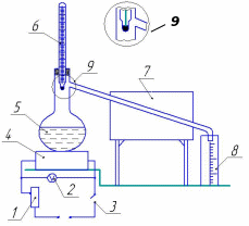 Рис. 2. Схема установки для определения фракционного состава нефтепродуктов: