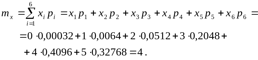 Розрив зв'язку відбувся на одній з п'яти ланок телефонного кабелю. Монтер послідовно перевіряє ланки на предмет розриву. Розглядається випадкова величина Х – число перевірених ланок до виявлення розриву, якщо ймовірність розриву однакова для всіх ланок. Визначити закон розподілу у вигляді ряду розподілу та у вигляді інтегральної функції розподілу . Побудувати графік . Визначити математичне сподівання і дисперсію .