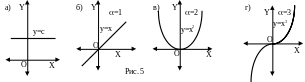 б) N (натуральное, т.е. целое положительное), функция определена на всей числовой оси. На рисунках. 5б,в,г приведены графики функций у=х для целых положительных значений =1, =2, =3.