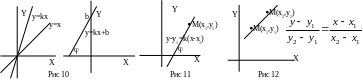 2. Уравнение прямой, про которую известно, что она проходит через данную точку M(x,y), а тангенс угла наклона ее равен k: y-y1=k(x-x1) (рис. 11) (угол наклона и точка определяют прямую).
