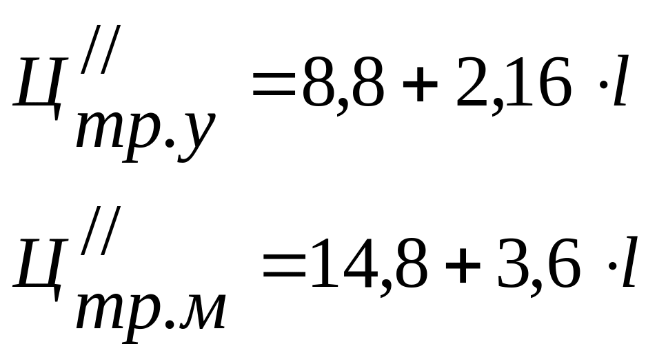 Расходы по транспортировке угля и мазута складываются из стоимости железнодорожной перевозки угля от места добычи(шахты) до города (транспорт + стоимость внутригородской перевозки автосамосвалами и автоцистернами) Стоимость магистрального железнодорожного транспорта каменного и бурого угля, а также мазута в зависимости от расстояния перевозки определяется по формулам(руб/тнт):