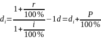 Пример. Риск 15%. Ставка рефинансирования 14%. Инфляция i= 12%. di = (1+14:100%) : (1+ 12:100%)-1=0,02 d=0,02 +15:100% = 0,17