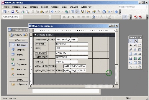 После выполненных действий и сохранения результатов изменения формы, на вкладку «Формы» объектов БД «Путевые листы» будет добавлена форма «Водители» (рис. 2.3).