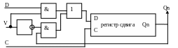 Для этого информация с выхода регистра по цепи ОС снова вводится на вход. Пока на V единица, информация вводится в регистр по входу D и обратная связь не действует. За n тактов запоминается n разрядный код. Затем на V устанавливается «0» тактовыми импульсами по входу С. Информация с выхода Qn снова вводится в регистр одновременным последовательным (возможно и параллельным) считыванием и через n тактов находится в исходном состоянии.