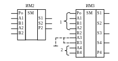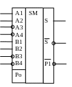 Благодаря усложненной входной логике, сумматор обладает большими функциональными возможностями. Многоразрядные сумматоры и вычитатели на его основе организуются без дополнительных элементов и могут работать в положительной и отрицательной логике. Удобен для схем с последовательным суммированием. Прямые и инверсные входы принадлежащие каждому из слагаемых одновременно не используются. Когда в работе А1, А2, В1, В2 на А3, А4, В3, В4 подаем высокий уровень. При использовании в качестве рабочих А3, А4, В3, В4 на остальные подаем «0».