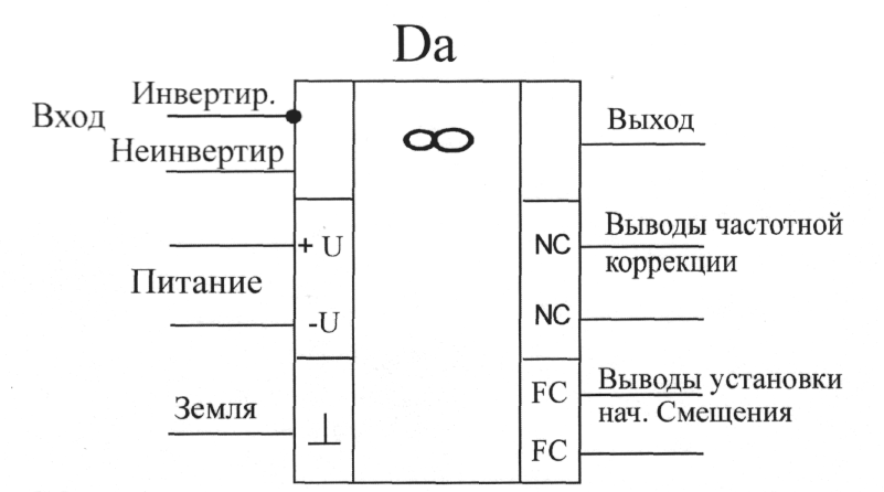 Частотные параметры определяют по АЧХ ОУ, которая имеет спадающий характер в области высокой частоты, начиная от частоты среза. Причиной этого является частотная зависимость параметров транзисторов и паразитных емкостей схемы ОУ. По инвертирующему входу ОУ обычно охватывается ООС. В области высоких частот это приводит к дополнительному (сверх 180˚) фазовому сдвигу, который в пределе может достигать значения в 360˚. Т.о возникает ПОС, что приводит к самовозбуждению схемы. Для устранения самовозбуждения в ОУ вводят внешние корректирующие RC-цепи и места их подключения к микросхеме указываются заводом изготовителем.