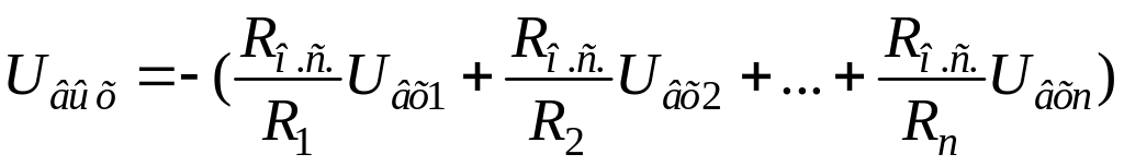 Для инвертирующего сумматора выходное напряжение определяется по формуле