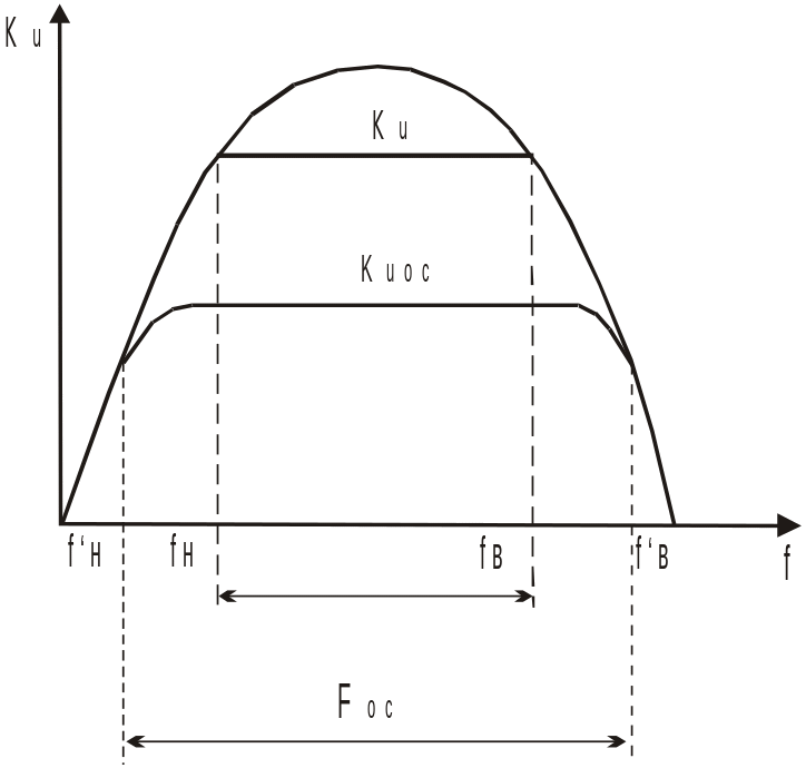 Улучшение стабильности коэффициента усиления с помощью ООС широко используется для расширения АЧХ усилителя. При отклонении в области НЧ или ВЧ уменьшается Ки, но уменьшается и глубина ООС, т.е. 1+ χ Ки. В результате КиОС изменяется слабо и реализуется АЧХ с широкой полосой пропускания.