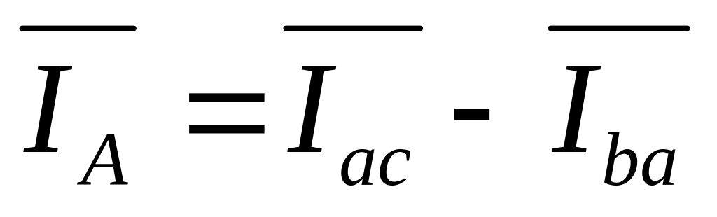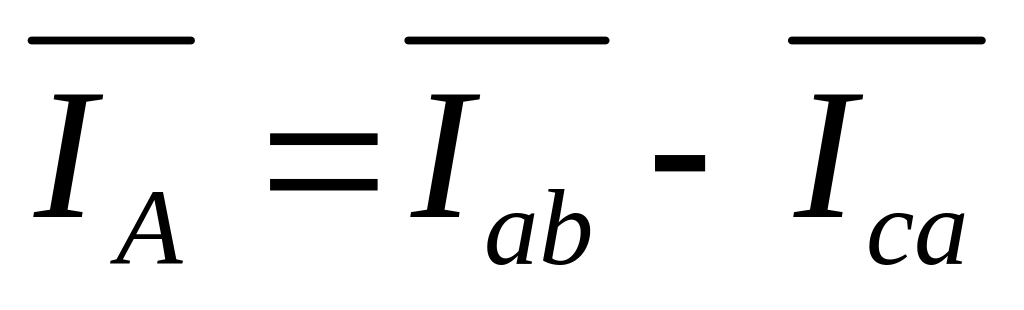 2. Лінійні струми дорівнюють геометричній різниці фазних струмів при будь якому навантаженні фаз. При прямому з’єднанні: