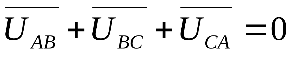 5. При симетричній системі напруг геометрична сума фазних та лінійних напруг дорівнює нулю: