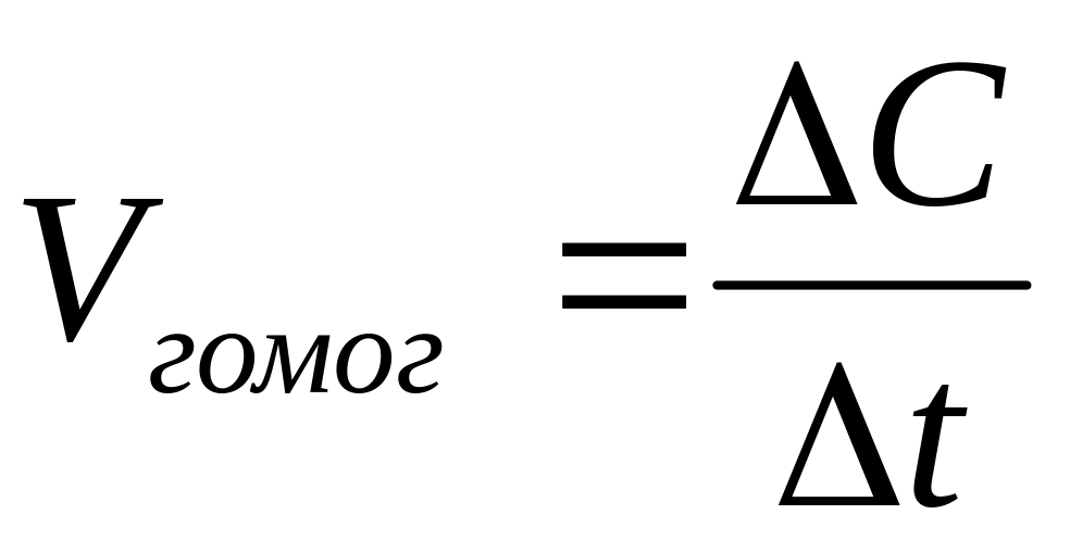 2) Швидкістю реакції в гомогенній системі називається зміна концентрації будь-якої з речовин, що вступають у реакцію або утворюються під час реакції, що відбувається за одиницю часу.