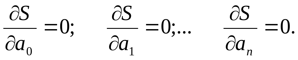 Вишукування тих значень параметрів ао,а1,...аn, що призводять до найменшого значення функції S = S(ао,а1,...аn), зводиться до рішення системи рівнянь