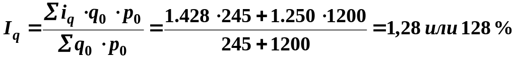 На основе приведённых данных определить общий индекс физического объёма реализации.