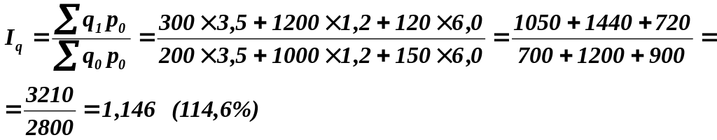 Подставив в формулу среднего арифметического индекса физического товарооборота, получим: