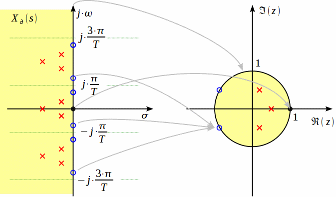 З властивостей процедури переходу на основі білінійного перетворення витікає, що уявна вісь S-площини відображається в одиничне коло в Z-площини (де |z|=1).
