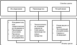 Инновационный цикл состоит из стадий, каждая из которых в свою очередь состоит из отдельных этапов, которые характеризуют ее в двух аспектах: