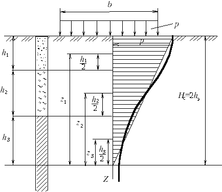 Рис.Ф.10.11. Схема к расчету осадки методом эквивалентного слоя |