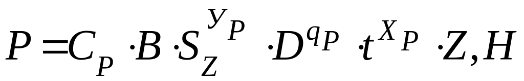 где Р – сила резания на 1 мм длины лезвия, Н зависящая от обрабатываемого материала и величины подачи Sz.