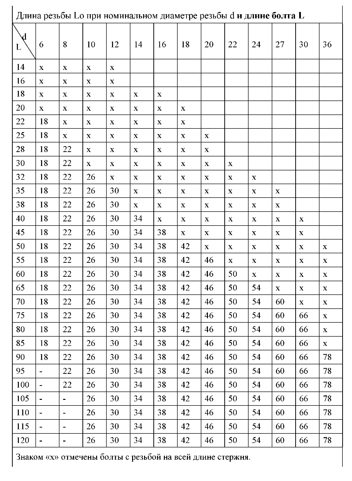 Знаком «х» отмечены шпильки с L0 = L - |