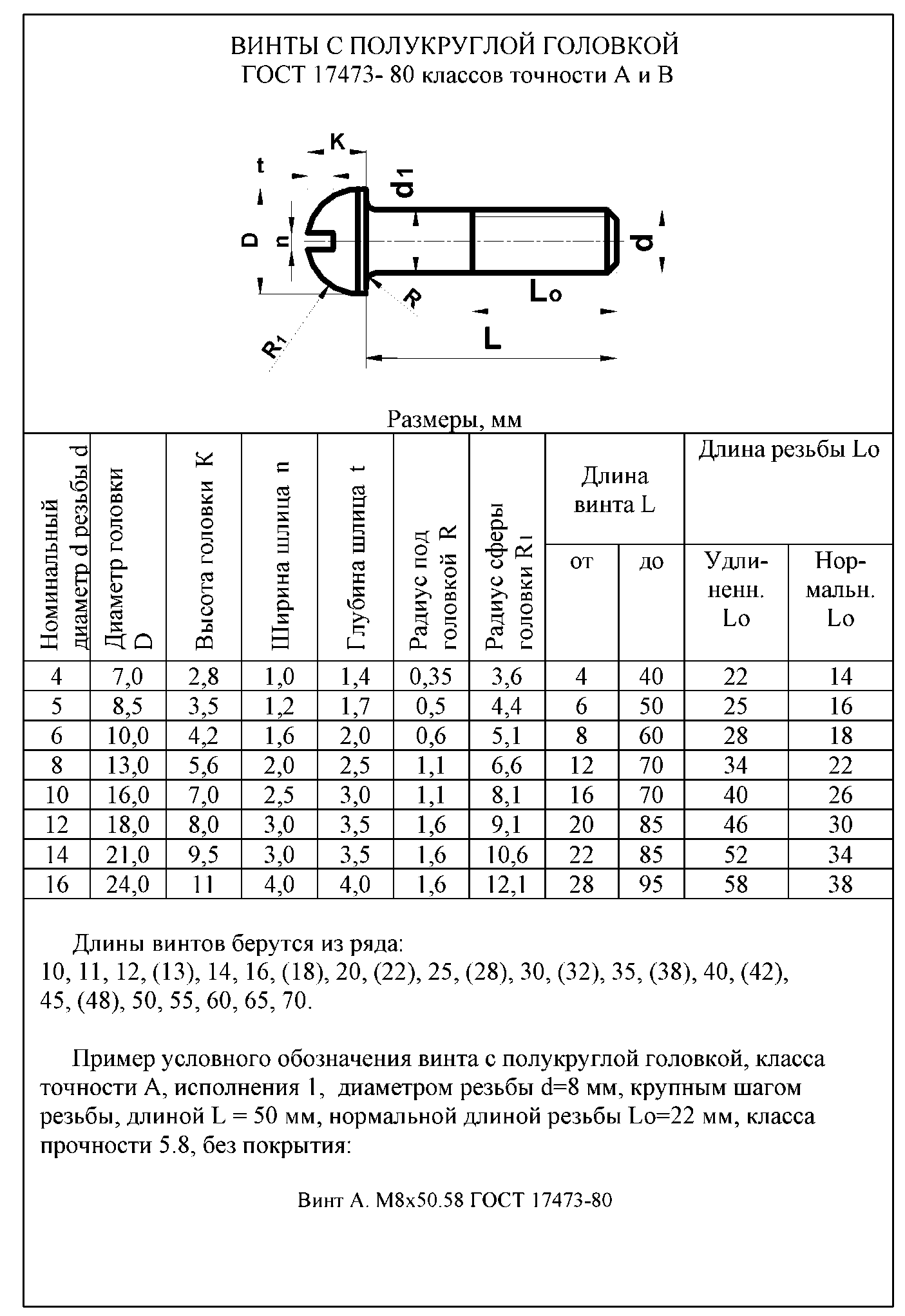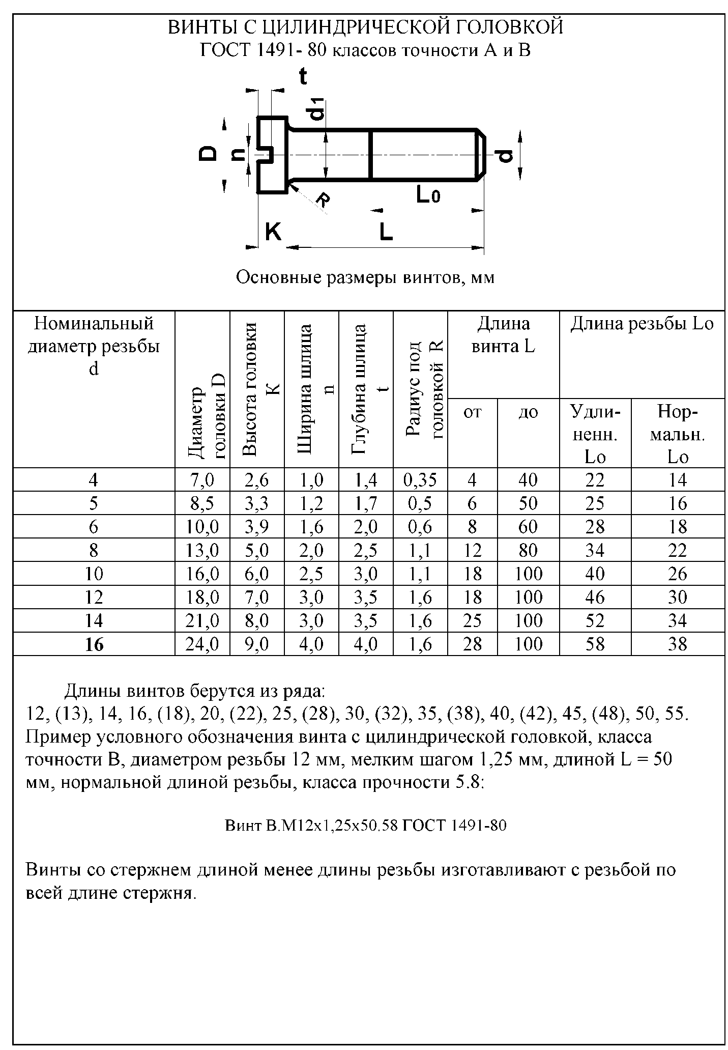 Винт - стандартное изделие цилиндрической формы, с резьбой на одном конце и головкой, различной формы, на другом. Конструкцию и размеры винтов с цилиндрической и полукруглой головкой определяют ГОСТ 1491 - 80 и ГОСТ 17437 - 80.