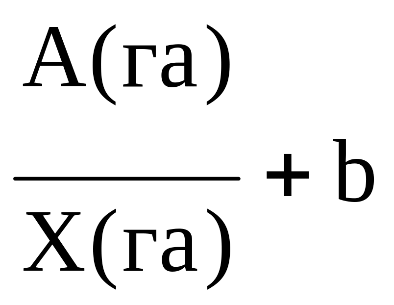 где С – себестоимость единицы продукции, р. на 1 ц продукции; А (га) – постоянные затраты, р. на 1 га; Х (га) – урожайность, ц/га; b – сумма переменных затрат, р. на 1 ц продукции.