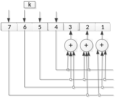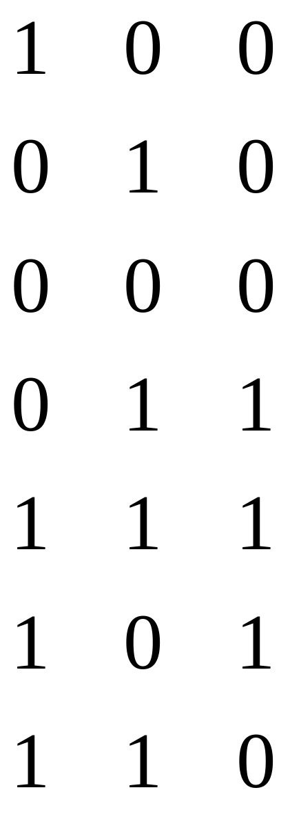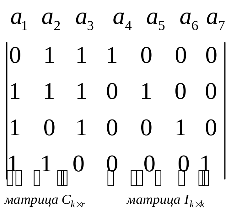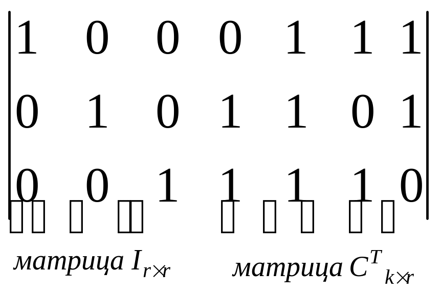Элементы, соответствующие 4, 5, 6, 7 столбцам, будут являться информационными, а 1,2,3 – проверочными.