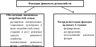 Финансы домохозяйств выполняют две функции: обеспечение жизненных потребностей семьи и распределительную.