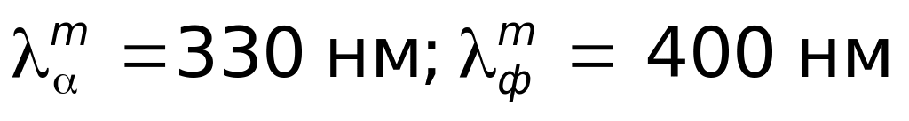 УФ-флуоресценція білка. Білки мають три власні флуоресцентні хромофори – триптофан, тирозин і фенілаланін. Більш інтенсивну флуоресценцію виявляють триптофан і тирозин, фенілаланін флуоресціює слабо. У водному розчині при збудженні з = 295 нм параметри флуоресценції триптофану є такими: максимум спектра флуоресценції max = 353 нм, квантовий вихід = 0,13 і час життя флуоресценції =3,1 нс; для тирозину за з = 275 нм: max = 304 нм, = 0,14 і = 3,6 нс; для фенілаланіну за з = 260 нм: max = 282 нм, = 0,02 і = 6,8 нс.
