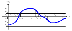 Если рассматривать попадание значения непрерывного сообщения в определенный интервал, как появление определенной буквы, то непрерывное сообщение можно рассматривать как предельный случай дискретного если число букв устремить к бесконечности (рис. 1.3).