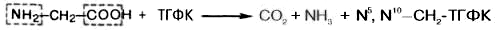 Основной путь катаболизма глицина - его распад на СО2, NH3 и N5, N10-метилентетрагидрофолиевую кислоту по уравнению: