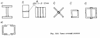 Типы сечений. При компоновке сечений колонн многоэтажных зданий нужно добиваться их максимальной компактности, так как это позволяет увеличить полезную площадь помещений. При небольшой свободной длине колонн (в пределах этажа 3—4 м) и значительной площади сечения (нагрузка в нижних этажах достигает нескольких тысяч тонн) коэффициенты продольного изгиба получаются близкими к единице (гибкость 20—30) и, следовательно, по условию устойчивости сечения не требуют развития.