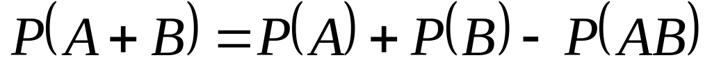 Вероятность суммы двух событий равна сумме вероятностей этих событий минус вероятность их произведения: