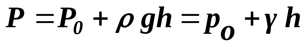 Це рівняння називається основним рівнянням гідростатики. Величина ρgh називається ваговим тиском. Надлишковий, або манометричний тиск співпадає з ваговим, коли тиск на вільну поверхню Р0 рідини дорівнює атмосферному.