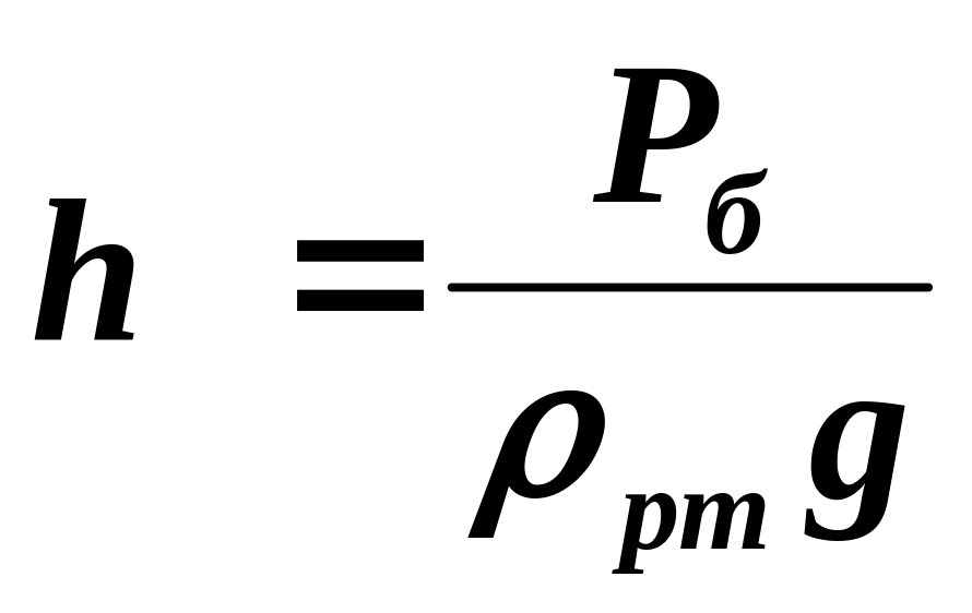 Атмосферний або барометричний тиск вимірюється рідинними чи механічними барометрами. Найпростіший рідинний барометр показаний на рис. 2.2. Він виготовлений у вигляді трубки, з якої відкачане повітря, запаяної з одного кінця. Відкритим кінцем трубка опущена в посудину з ртуттю. Оскільки на вільну поверхню діє атмосферний тиск, то ртуть піднімається на певну висоту h, яку можна визначити із співвідношення: