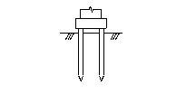 Расположение свай в кусте. Минимальное число свай в кусте 3. Если исключено развитие изгиба свай, разрешено делать две в направлении перпендикулярно к оси, проходящей через обе сваи.